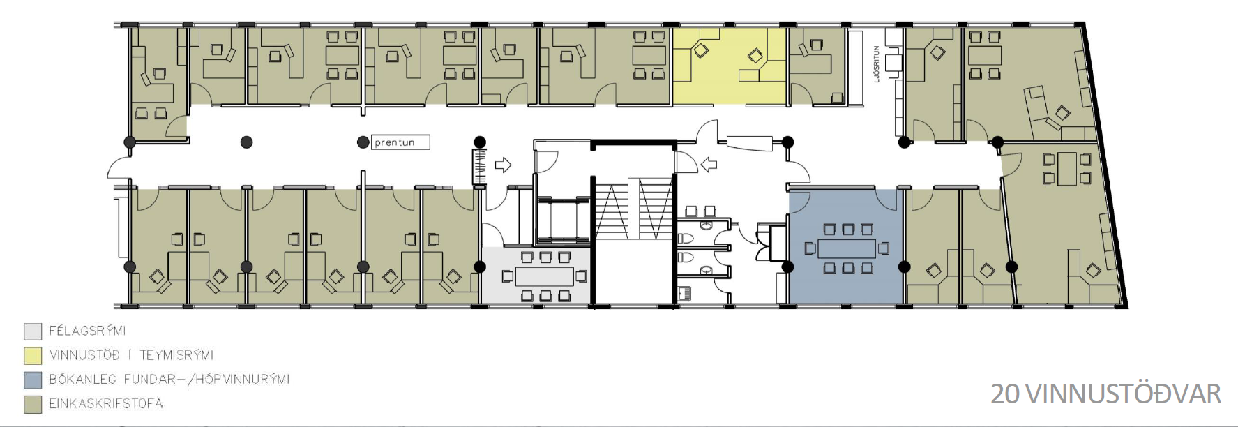 Hér má sjá uppröðun vinnustöðva eftir breytingar á húsnæðinu á síðasta ári: