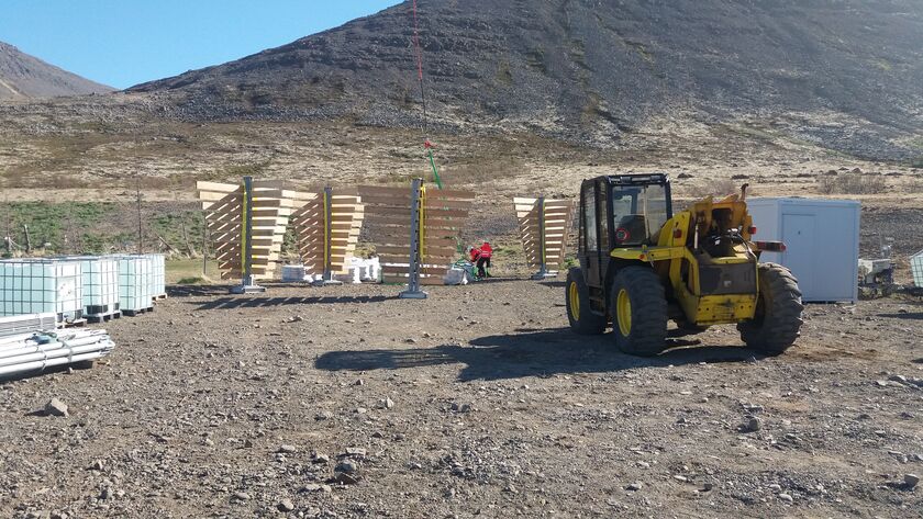 Uppsetning snjósöfnunargrinda og vindkljúfa á Patreksfirði fer vel af stað