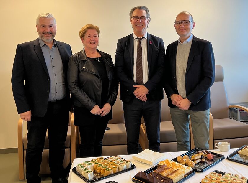 Hjálmar Örn Guðmarsson verkefnastjóri FSRE, Jóhanna Fjóla Jóhannesdóttir forstjóri HVE, Willum Þór Þórsson heilbrigðisráðherra og Karl Pétur Jónsson upplýsingafulltrúi FSRE.