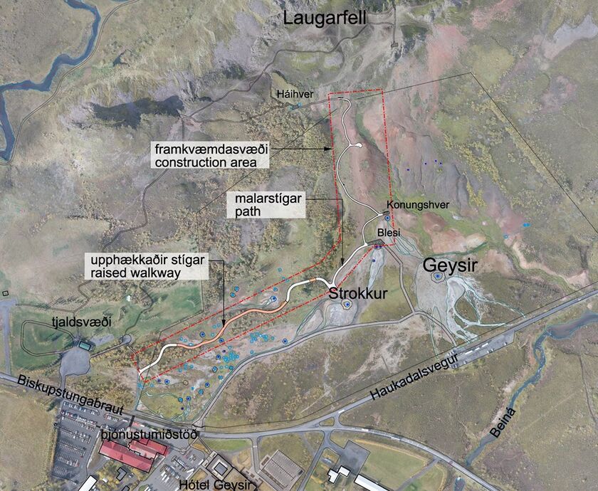 Kort af Geysissvæðinu sem sýnir framkvæmdasvæðið.