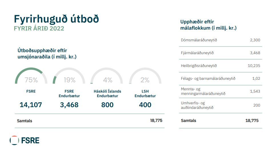FSRE fyrirhugar útboð fyrir 17,6 milljarða í ár