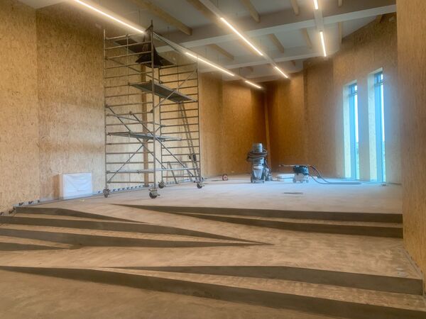 hússins að mestu lokið og frágangur inni í byggingunni að hefjast. Byggingin er